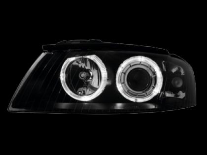 Φανάρια εμπρός angel eyes για Audi A3 (2000-2003) – μαύρα , χωρίς λάμπες (Η7) – σετ 2τμχ.