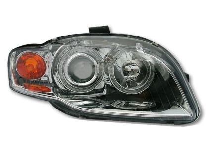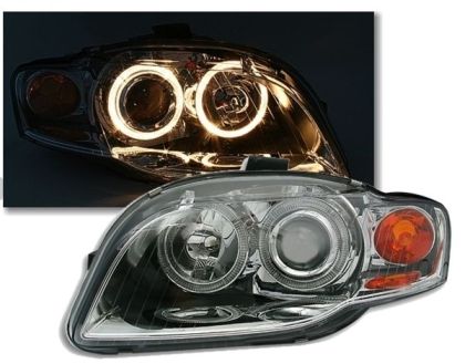 Φανάρια εμπρός angel eyes για Audi A4 (2004-2008) – chrome , χωρίς λάμπες (Η7) – σετ 2τμχ.