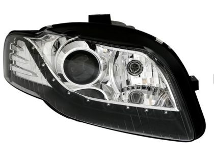 Φανάρια εμπρός led Dayline για Audi A4 (2001-2004) – μαύρα , χωρίς λάμπες (Η7) – σετ 2τμχ.