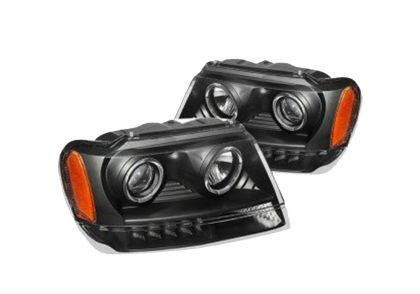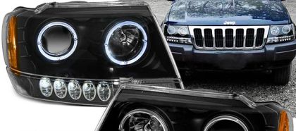 Φανάρια εμπρός led angel eyes για Jeep Grand Cherokee (1999-2005) – μαύρα , με λάμπες (Η1) – σετ 2τμχ.