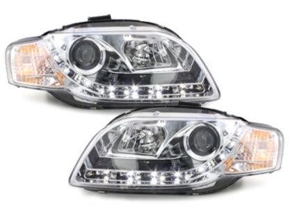 Φανάρια εμπρός led Daylight για Audi A4 (2004-2008) – chrome , με λάμπες (Η1) – σετ 2τμχ.