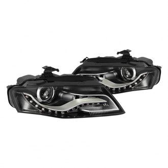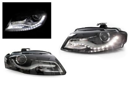 Φανάρια εμπρός με φώτα ημέρας led για Audi A4 B8 (2007-2011) -μαύρα , με λάμπες (Η1) – σετ 2τμχ.