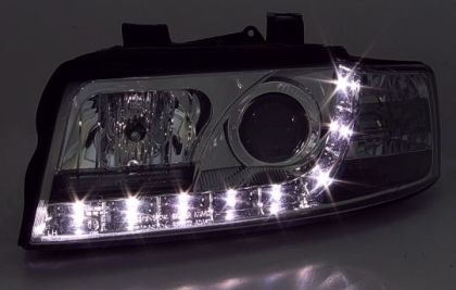Φανάρια εμπρός led Dayline για Audi A4 (2001-2004) – chrome , με λάμπες (Η1) – σετ 2τμχ.