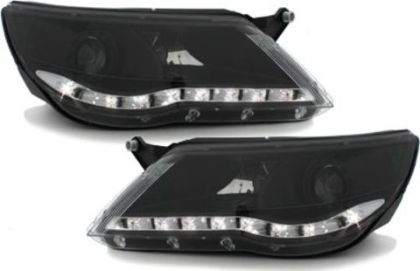 Φανάρια εμπρός led για Vw Tiguan (2007-2011) , black , με λάμπες (Η1) – σετ 2τμχ.