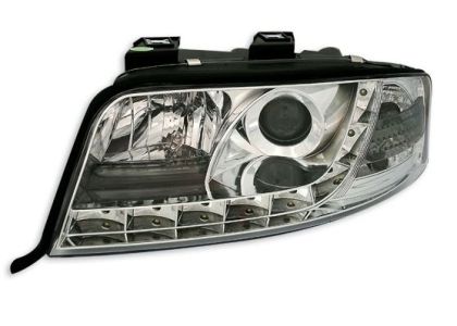 Φανάρια εμπρός με φώτα ημέρας led για Audi A6 (2001-2003) – chrome , με λάμπες (Η1) – σετ 2τμχ.