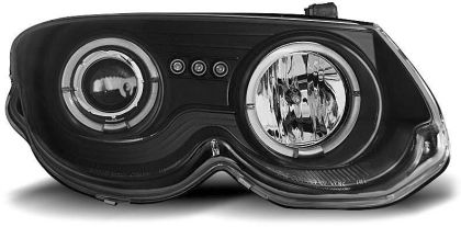 Φανάρια εμπρός angel eyes με led για Chrysler 300M (1999-2004) – μαύρα , με λάμπες (Η1) – σετ 2τμχ.