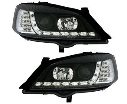 Φανάρια εμπρός led με DRL για Opel Astra G (1998-2004) – μαύρα , με λάμπες (Η1) – σετ 2τμχ.