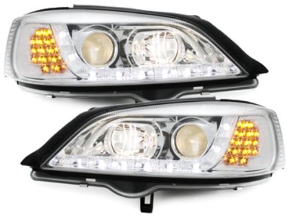 Φανάρια εμπρός led για Opel Astra G (1998-2004) – chrome , με λάμπες (Η1) – σετ 2τμχ.