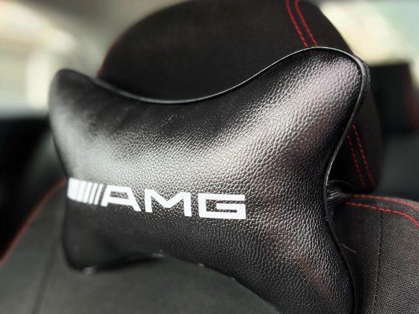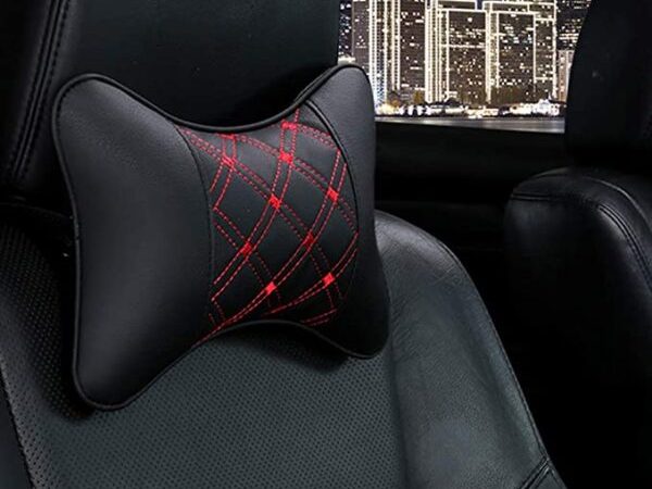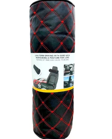 Μαξιλαράκι αυχένα δερματίνη με κόκκινες ραφές για κάθισμα αυτοκινήτου