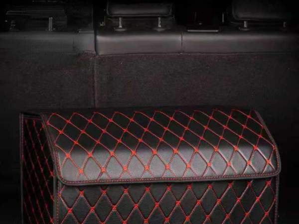 Τσάντα τακτοποίησης πόρτ μπαγκάζ δερμάτινη μαύρο καπιτονέ με κόκκινη ραφή