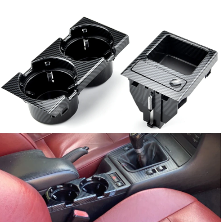 Ποτηροθήκη με κερματοθήκη για BMW Ε46 για 2 ποτήρια look carbon carbon – σετ 2 τμχ.