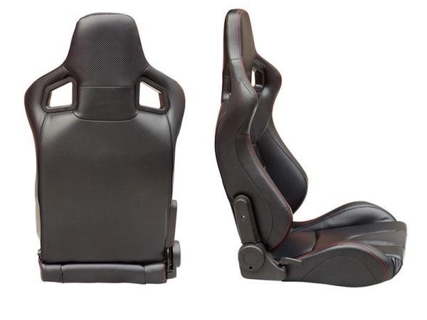 Bucket καθίσματα δερμάτινα μαύρα με κόκκινες ραφές ζευγάρι 2 τεμαχίων