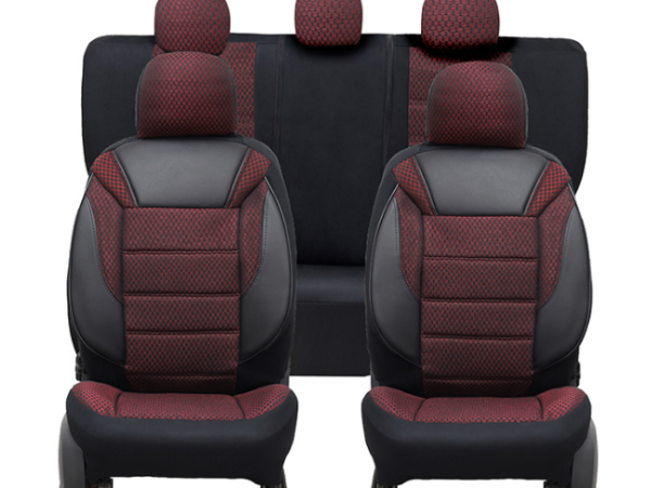 Καλύμματα καθισμάτων υφασμάτινα με δερμάτινες λεπτομέρειες μπορντό/μαύρο universal
