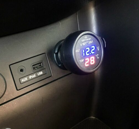 Ψηφιακό Βολτόμετρο / Θερμόμετρο Αυτοκινήτου με Θύρα Φόρτισης USB