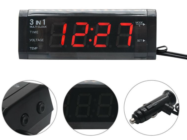 Ψηφιακό Ρολόι / Θερμόμετρο / Βολτόμετρο Αυτοκινήτου 3 in 1