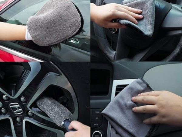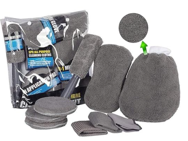 Microfiber 9 σε 1 Κιτ καθαρισμού αυτοκινήτου με πανί και γάντια χεριών διπλής όψης και σφουγγάρι