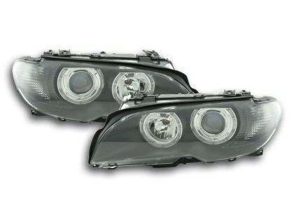 Φανάρια εμπρός angel eyes για BMW E46 coupe και cabrio (2003-2006) – μαύρα , χωρίς λάμπες (Η7) – σετ 2τμχ.