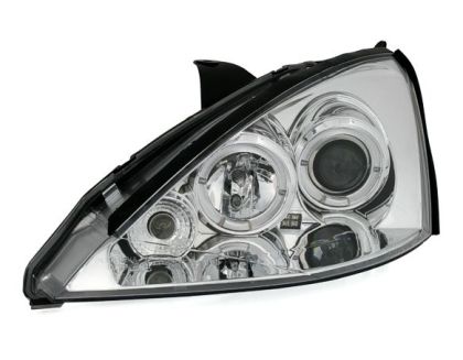 Φανάρια εμπρός angel eyes για Ford Focus (2001-2004) – chrome , με λάμπες (Η1) – σετ 2τμχ.