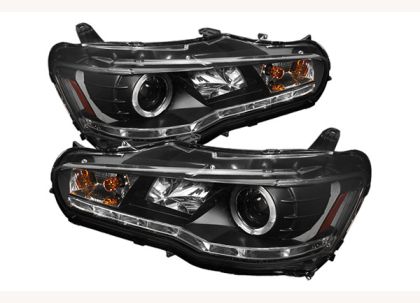 Φανάρια εμπρός led για Mitsubishi Lancer (2008-2011) – μαύρα , με λάμπες (Η1) – σετ 2τμχ.