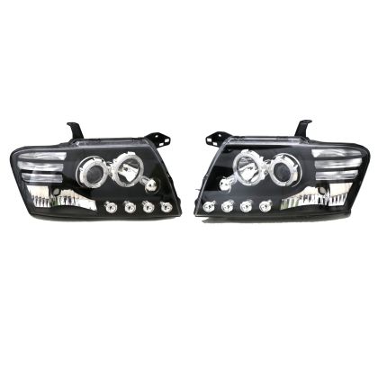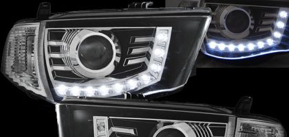 Φανάρια εμπρός led για Mitsubish L200 (2006+) – μαύρα , με λάμπες (Η1) – σετ 2τμχ.