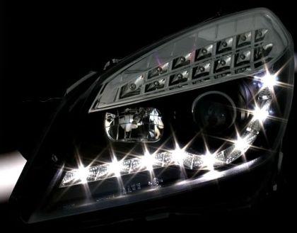 Φανάρια εμπρός led με DRL για Opel Astra H (2004-2009) – black , με λάμπες (Η1) – σετ 2τμχ.
