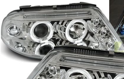 Φανάρια εμπρός angel eyes για Vw Passat B5.5 (2001-2005) – chrome , με λάμπες (Η1) – σετ 2τμχ.
