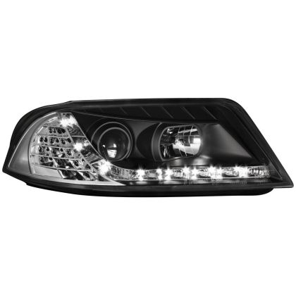Φανάρια εμπρός led dayline για Vw Passat B5.5 (2001-2005) – μαύρα , με λάμπες (Η1) – σετ 2τμχ.