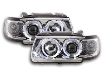 Φανάρια εμπρός angel eyes για Vw Polo 6N (1994-1999) – chrome , με λάμπες (Η1) – σετ 2τμχ.