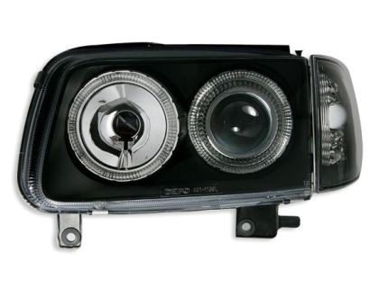 Φανάρια εμπρός angel eyes για Vw Polo 6N (1994-1999) – μαύρα , χωρίς λάμπες (Η7) – σετ 2τμχ.
