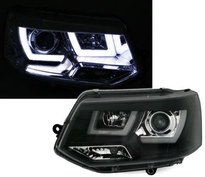 Φανάρια εμπρός led για Vw Transporter T5 (2003-2009) , black , με λάμπες (Η1) – σετ 2τμχ.