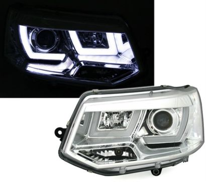 Φανάρια εμπρός led για Vw Transporter T5 (2003-2009) – chrome , με λάμπες (Η1) – σετ 2τμχ.