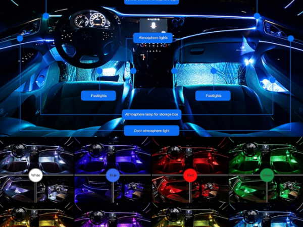 Εσωτερικός φωτισμός αυτοκινήτου με τηλεκοντρόλ και οπτική ίνα με 64 χρώματα
