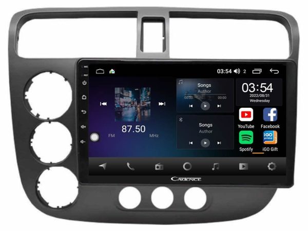 Cadence X Series Honda Civic 2001-2005 8core Android 14 4+64GB Navigation Multimedia Tablet 9″