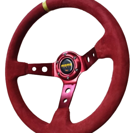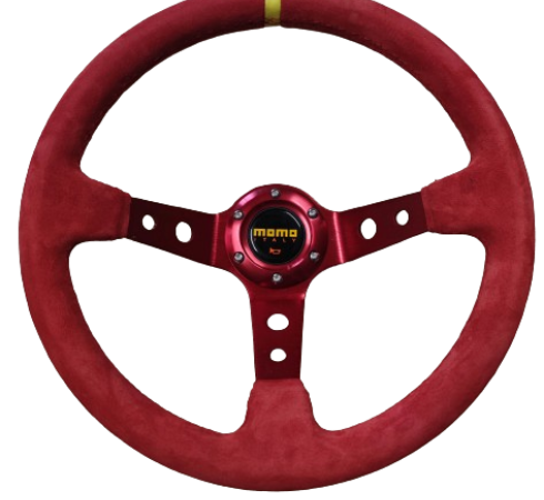 Αγωνιστικό τιμόνι βαθύκωνο κόκκινο alcantara – momo