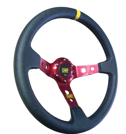 OMP – αγωνιστικό τιμόνι βαθύκωνο μαύρο/κόκκινο δερμάτινο