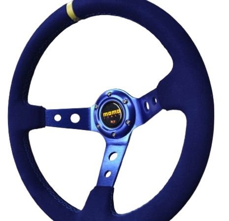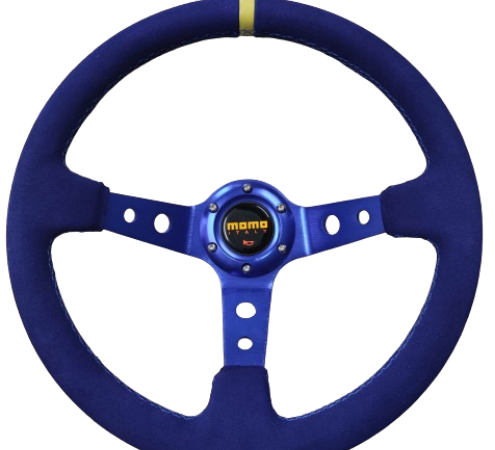 Αγωνιστικό τιμόνι βαθύκωνο μπλέ alcantara – momo