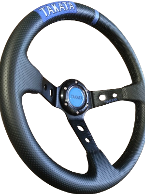 TAKATA – αγωνιστικό τιμόνι βαθύκωνο μαύρο με μπλέ ρίγα