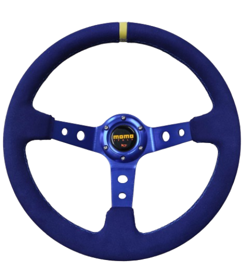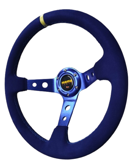 Αγωνιστικό τιμόνι βαθύκωνο μπλέ alcantara – momo