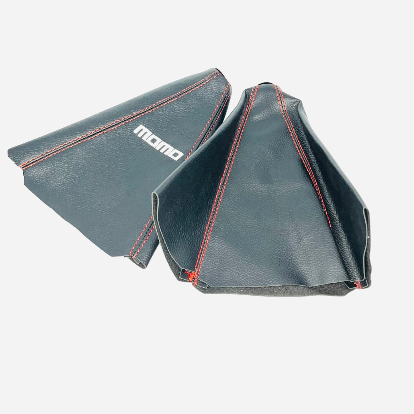 Φούσκα λεβιέ ταχυτήτων σε μαύρο χρώμα με κόκκινη ραφή, από την MOMO.