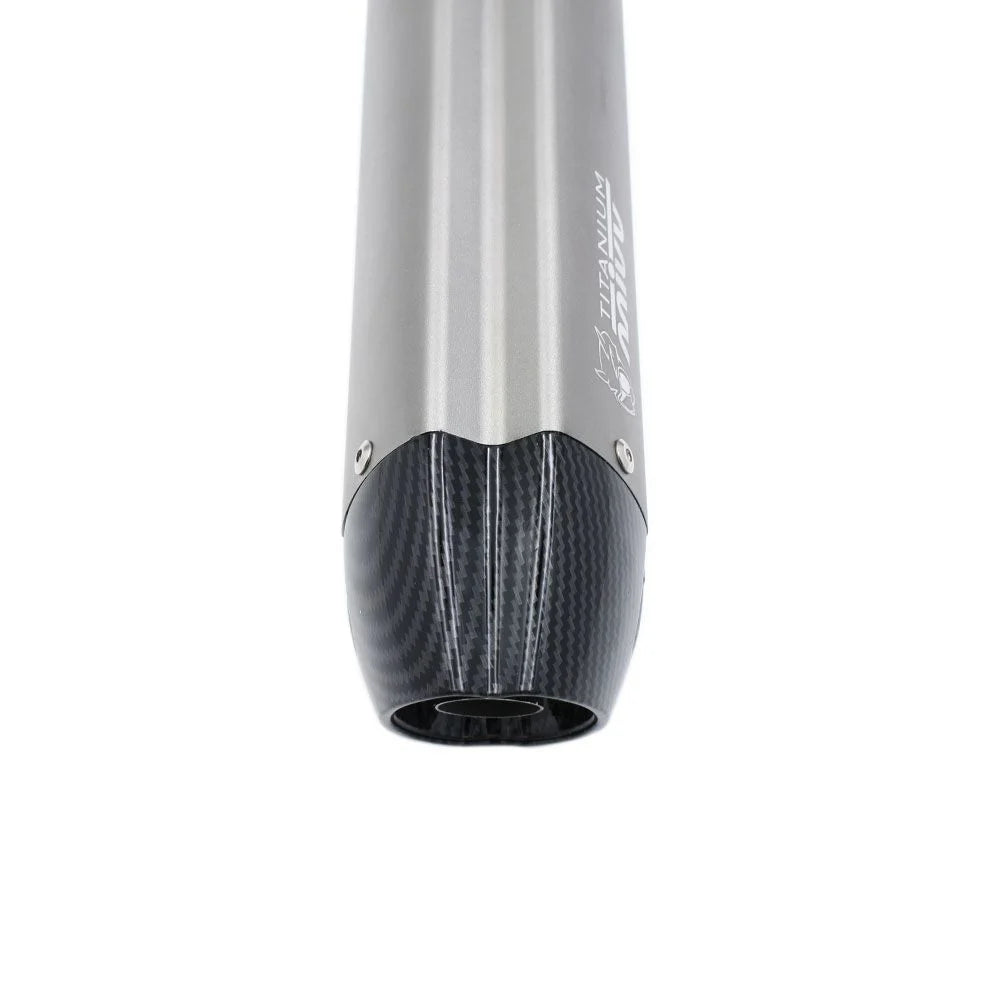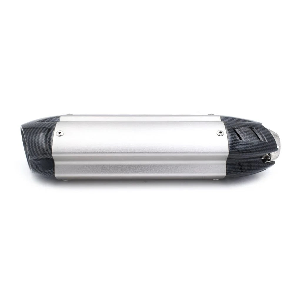 Εξάτμιση πλήρες σετ απο υψηλής ποιότητας από ανοξείδωτο ατσάλι με τελείωμα carbon. Ο προσαρμογέας συγκόλλησης από ανοξείδωτο ατσάλι επιτρέπει την τοποθέτηση σωλήνων 37mm-53mm.