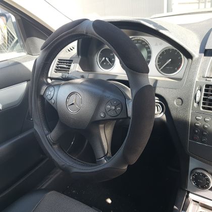 Κάλυμμα τιμονιού από οικολογικό δέρμα 38 cm – Race – μαύρο χρώμα -1 τμχ.