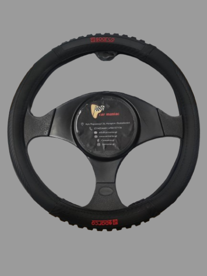 Κάλυμμα τιμονιού δερματίνη μαύρο με λογότυπο Sparco