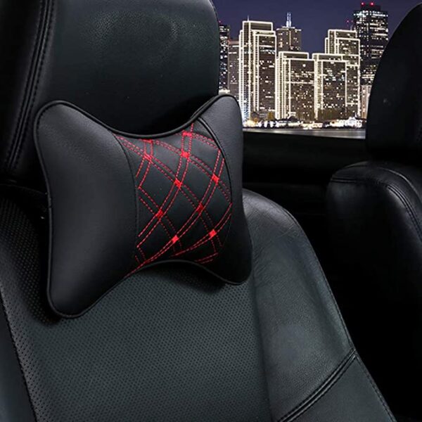 Μαξιλαράκι αυχένα δερματίνη με κόκκινες ραφές