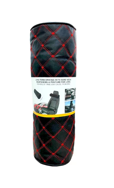 Μαξιλαράκι αυχένα δερματίνη με κόκκινες ραφές για κάθισμα αυτοκινήτου