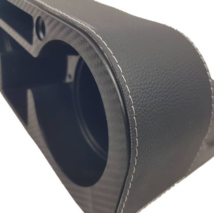 Ποτηροθήκη αυτοκινήτου – για 2 ποτήρια ανάμεσα στα καθίσματα – cabon μαύρη δερμάτινη