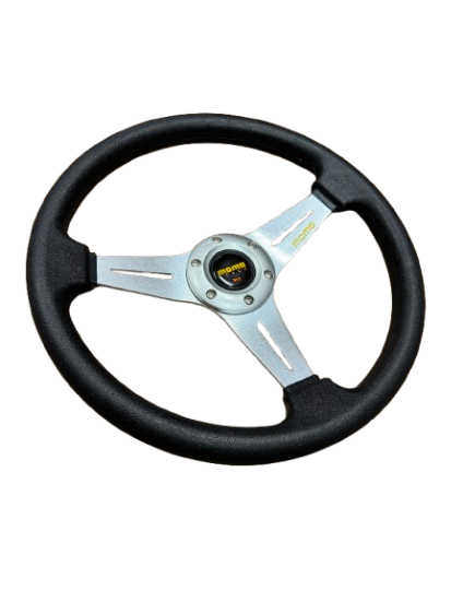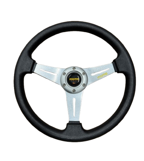 Τιμόνι αγωνιστικό τριάκτινο μαύρο/ασημί 35cm – Momo