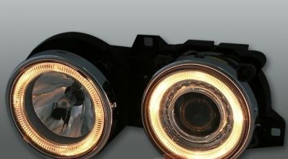 Φανάρια εμπρός με σταυρό για BMW E30 (1987-1990) – μαύρα chrome , χωρίς λάμπες (Η7) – σετ 2τμχ.