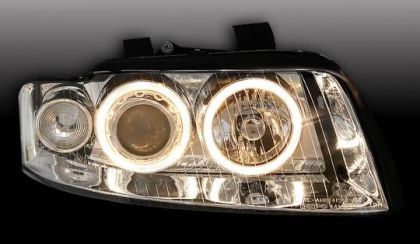 Φανάρια εμπρός angel eyes για Audi A4 (2001-2004) – chrome , χωρίς λάμπες (Η7) – σετ 2τμχ.