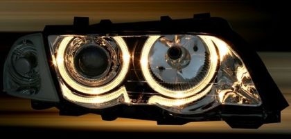 Φανάρια εμπρός angel eyes για BMW E46 coupe και cabrio (2003-2006) - μαύρα , χωρίς λάμπες (Η7) - σετ 2τμχ.