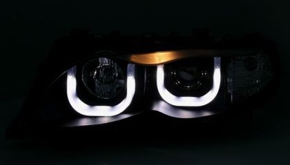 Φανάρια εμπρός angel eyes για BMW E46 sedan (2001-2003) - μαύρα , χωρίς λάμπες (Η7) - σετ 2τμχ. 418.19€